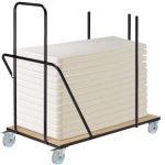 Chariots de manutention pour tables pliantes – 3 barres viennent sécuriser les tables durant le déplacement.