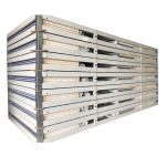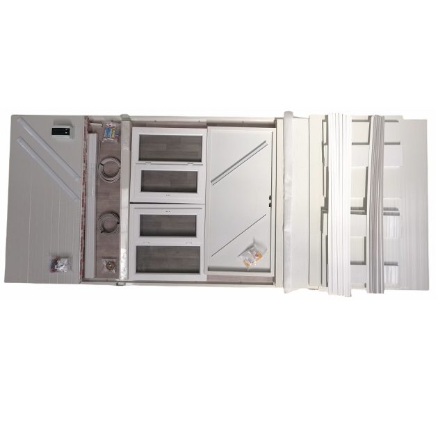 Les unités sont étanches, isolées et protégées contre le vol grâce à des panneaux sandwich galvanisés isolés. Contrairement à la plupart des sociétés de producteurs de packs plats, notre gamme de packs plats est livrée avec tout l’équipement et les extras dont vous pourriez avoir besoin, même le kit électrique. Le kit électrique qui contient un fusible de 32 A, une prise en plâtre, une fiche, un éclairage d’armature LED de 120 cm et des câbles est livré avec toute notre gamme de produits à plat !