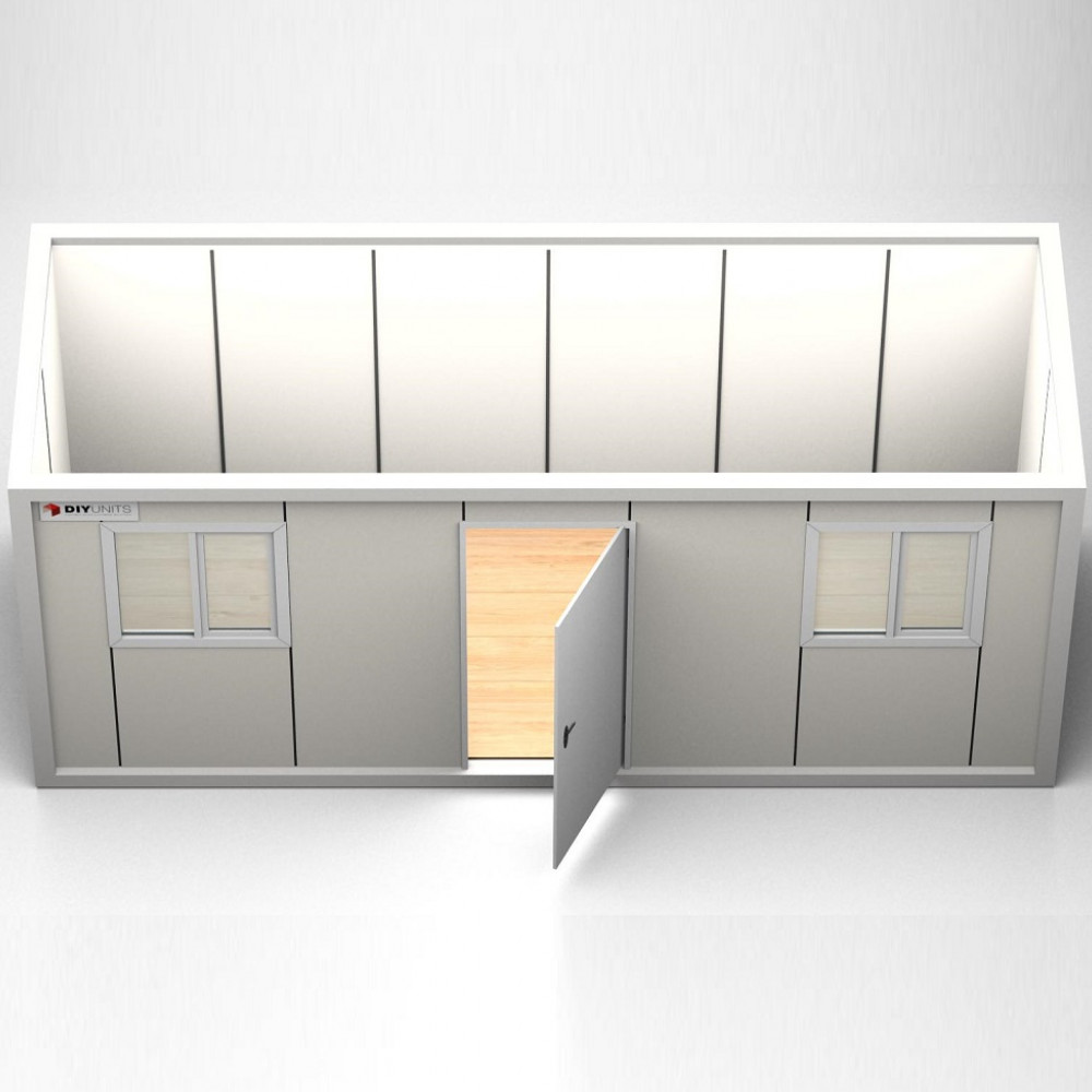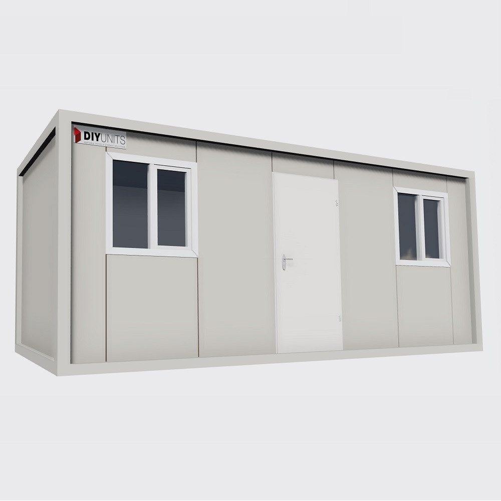 Conteneurs de bureau préfabriqués de nouvelle génération ! Il n’a jamais été aussi facile et rapide de construire un espace de bureau. Panneaux muraux solides, fenêtres plus grandes, cadre en acier, revêtement de sol en bois, matériaux d’installation électriques montés en surface ; tous inclus avec votre nouveau bureau à plat.