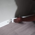 Étage Vinyle PVC enduit sur fibrociment, avec plinthe blanche