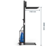La capacité de charge de 1.000 kg permet de soulever et de transporter sans difficulté des palettes Europe sur de courtes distances. La marchandise est soulevée sans effort par le moteur de levage électrique intégré au châssis et déplacée manuellement. La montée et la descente de la palette sont commandées par un bouton situé sur la carrosserie du véhicule. Si vous devez parcourir de longues distances ou gravir des pentes, nous vous recommandons le transpalette électrique HE1200/3, car contrairement au gerbeur semi-électrique, ses déplacements sont assistés électriquement.