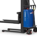 Les dimensions du gerbeur semi-électrique SolidHub conviennent parfaitement à une utilisation dans un entrepôt ou un site de production de petites dimensions avec des voies d’accès étroites.