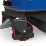 Les freins de stationnement mécaniques sur les roues pivotantes assurent une stabilité hors pair lors du levage et de l’abaissement des marchandises. Une protection des pieds au niveau des roues pivotantes offre une sécurité supplémentaire aux utilisateurs.