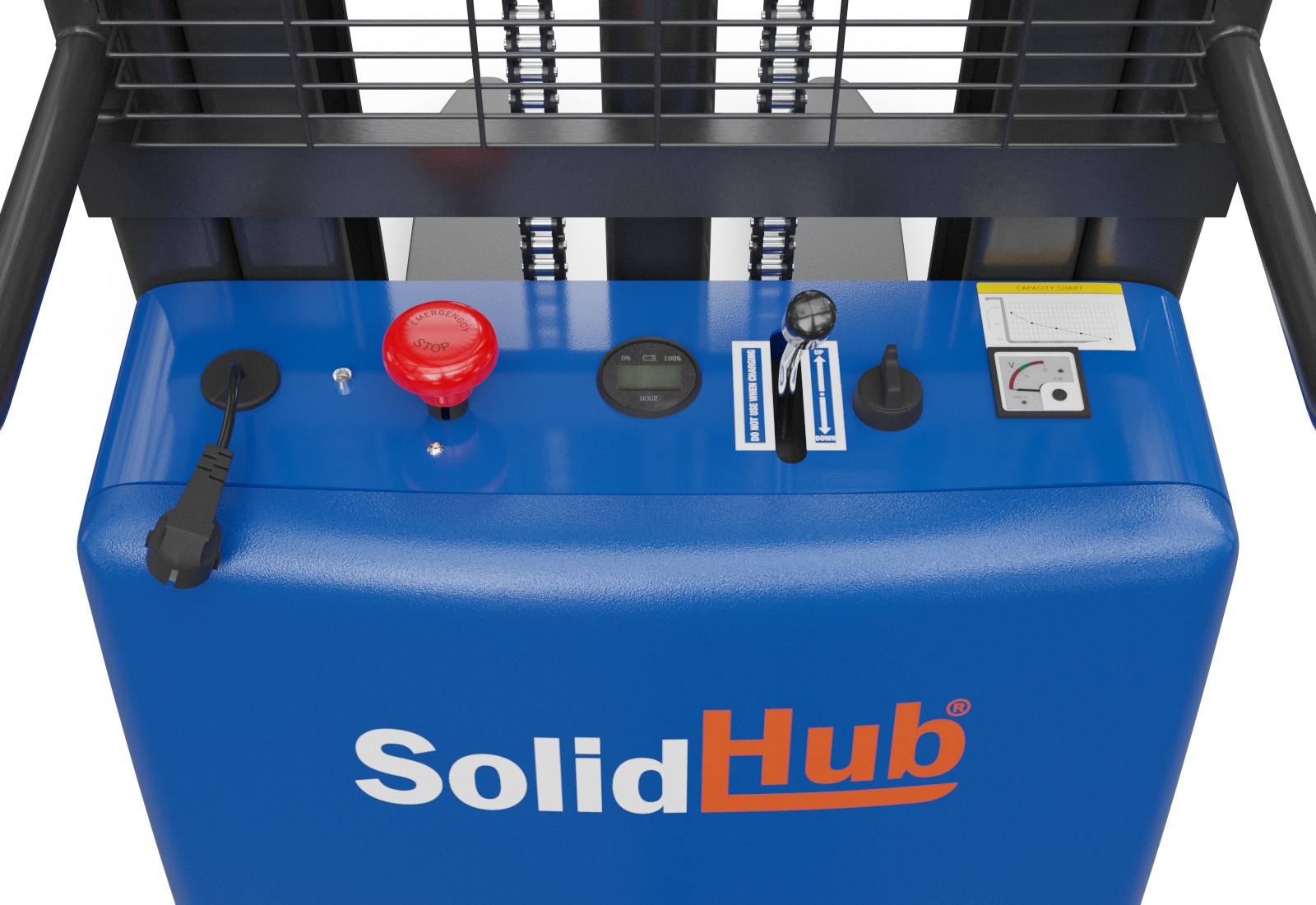 Le gerbeur semi-électrique à barre de traction de la marque SolidHub est conçu pour faire face à toutes les circonstances de la vie quotidienne en entrepôt. Occasionnellement, il sert de table de travail pour préparer des pièces détachées à hauteur de prise ergonomique dans un atelier ou un local de production.