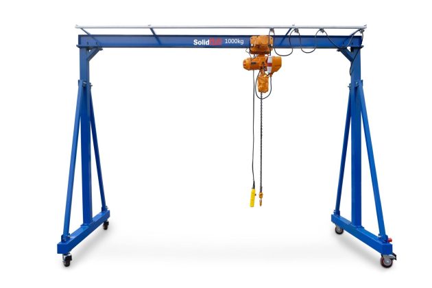 Avec le portique mobile, PK1000/2 de SolidHub vous soulevez sans difficulté des marchandises longues et lourdes pesant jusqu’à 1.000 kg. Sur simple pression d’un bouton, vous pouvez, grâce au palan électrique intégré, prendre des marchandises en quelques secondes via un crochet de levage et les déplacer horizontalement ou verticalement. Dans ce cas, la vitesse de levage est de 113 mm/s. Les quatre roues pivotantes vous permettent de déplacer le portique vers l’endroit souhaité. Les 4 freins d’immobilisation garantissent la stabilité nécessaire sur le lieu d’utilisation. Ce PK1000/2 est un outil idéal pour les travaux de réparation en atelier, le montage et la logistique. La hauteur de levage maximale de la grue portique de 1.500 mm x 4.000 mm x 3.000 mm en acier résistant est de 3.000 mm maximum.