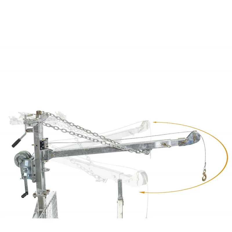 Grue avec Treuil Manuel : Inclut un stabilisateur et un bras de levage pivotant à 180° pour faciliter le chargement et le déchargement des matériaux. Le bras de levage est réglable en hauteur et en longueur.