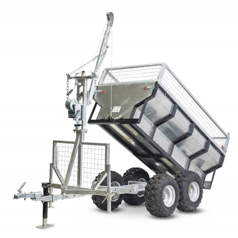 Options : Possibilité d’ajouter un treuil électrique 12 V pour plus de commodité et un set de 4 rehausses de 800 mm pour augmenter la capacité de transport.