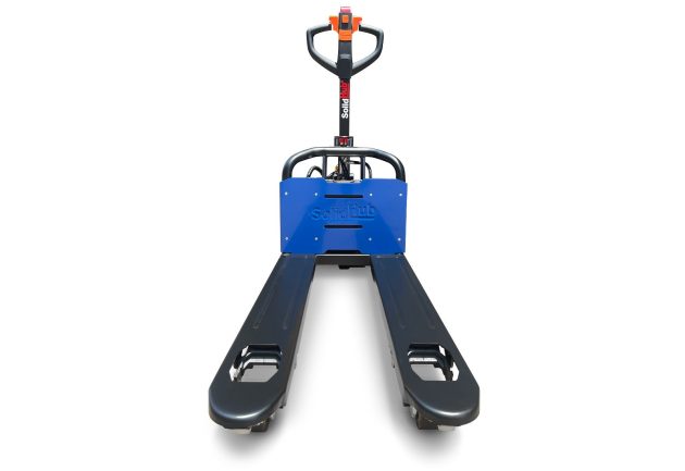 Jusqu’à un poids de charge de 1.500 kg, le transpalette électrique de la marque SolidHub soulève et transporte aisément les marchandises en stock et les produits finis.