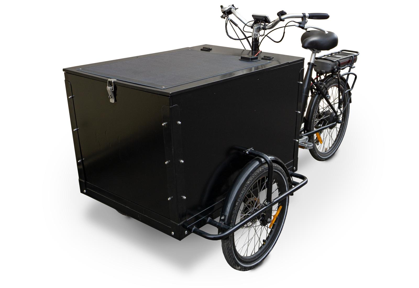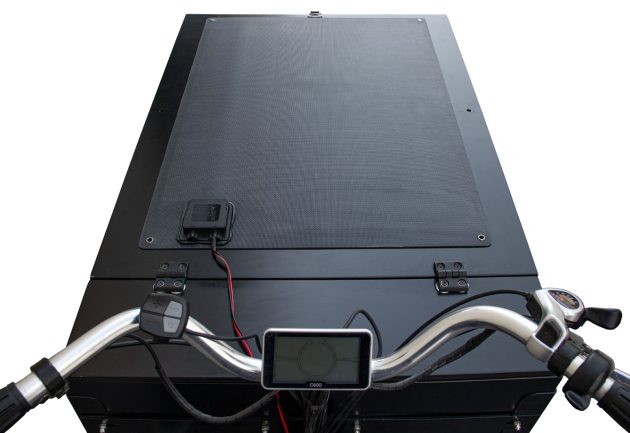 Avec ses 64 cellules solaires, la batterie du cargobike peut être facilement rechargée à l’arrêt. Chaque cellule est composée de silicium monocristallin.